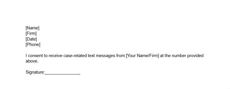Law firms using FirmSpan obtain SMS consent from their clients through their standard client intake process. Below is an example of the consent language used in client retainer agreements: